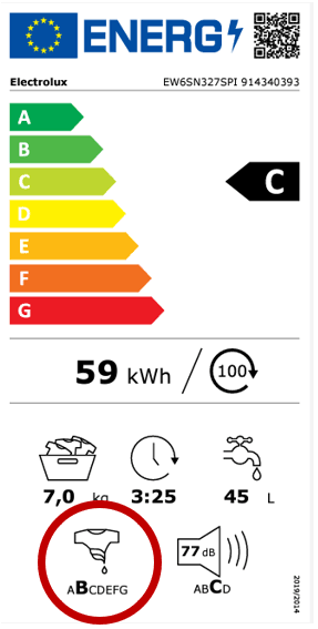 Klasa wirowania pralki jest podana na etykiecie energetycznej produktu