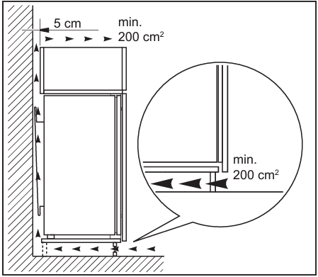 W przypadku lodówki już zainstalowanej: